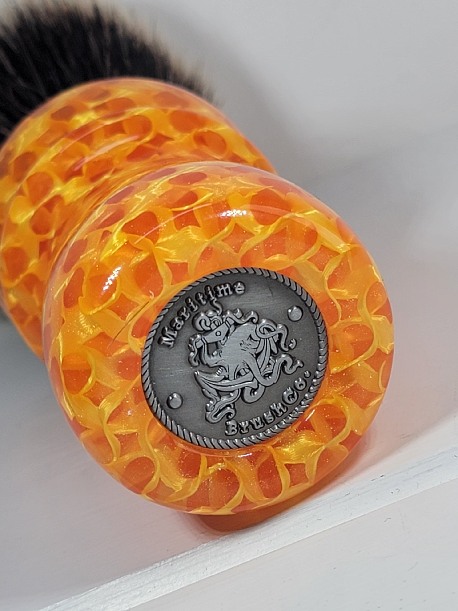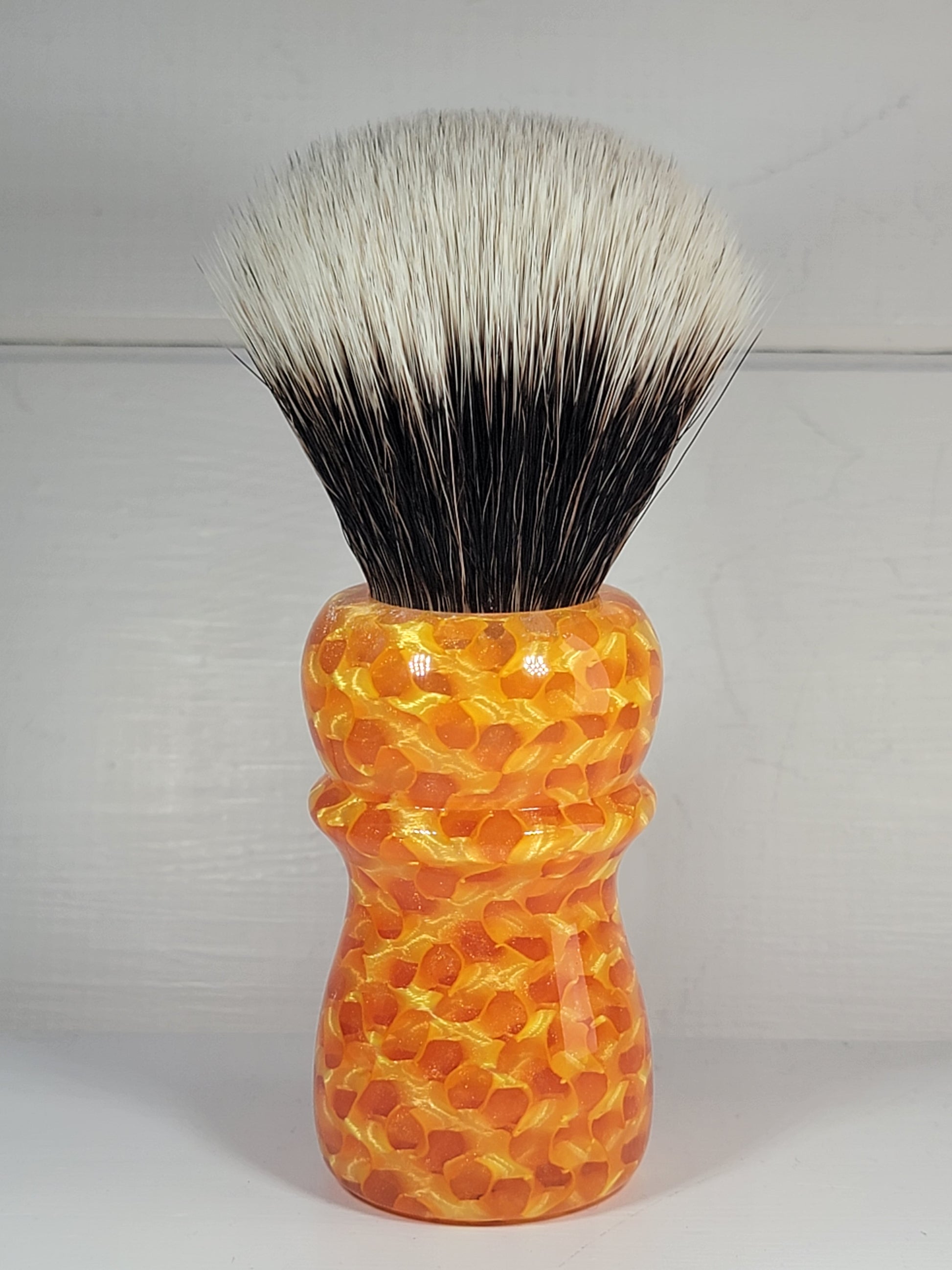 "Sunset" 24mm is an all resin handle made with a 3d printed design and hand mixed and poured resin. This handle is hand turned on a lathe and hand polished to a glossy finish. These make great travel brushes!